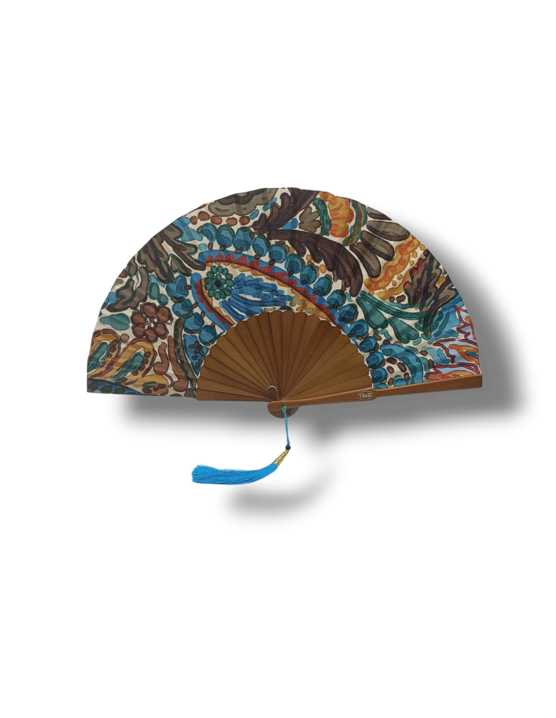 Discover the timeless elegance of our handcrafted folding fans, lovingly made in Indonesia by skilled artisans. Each piece is unique, featuring a sturdy yet lightweight mahogany wood frame combined with a finely decorated cotton fabric, adorned with vibrant, sophisticated patterns that celebrate the rich colors and traditions of Southeast Asia.