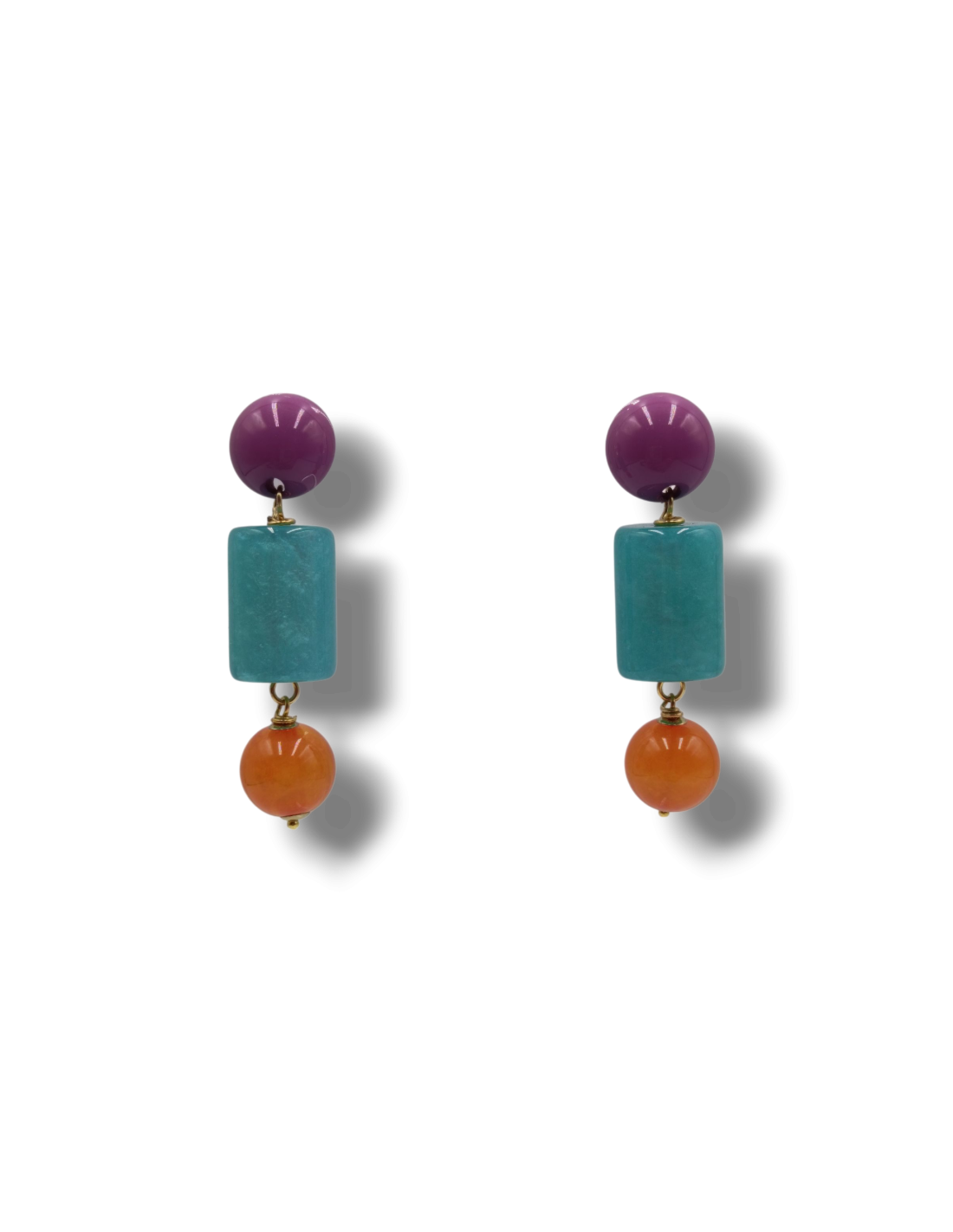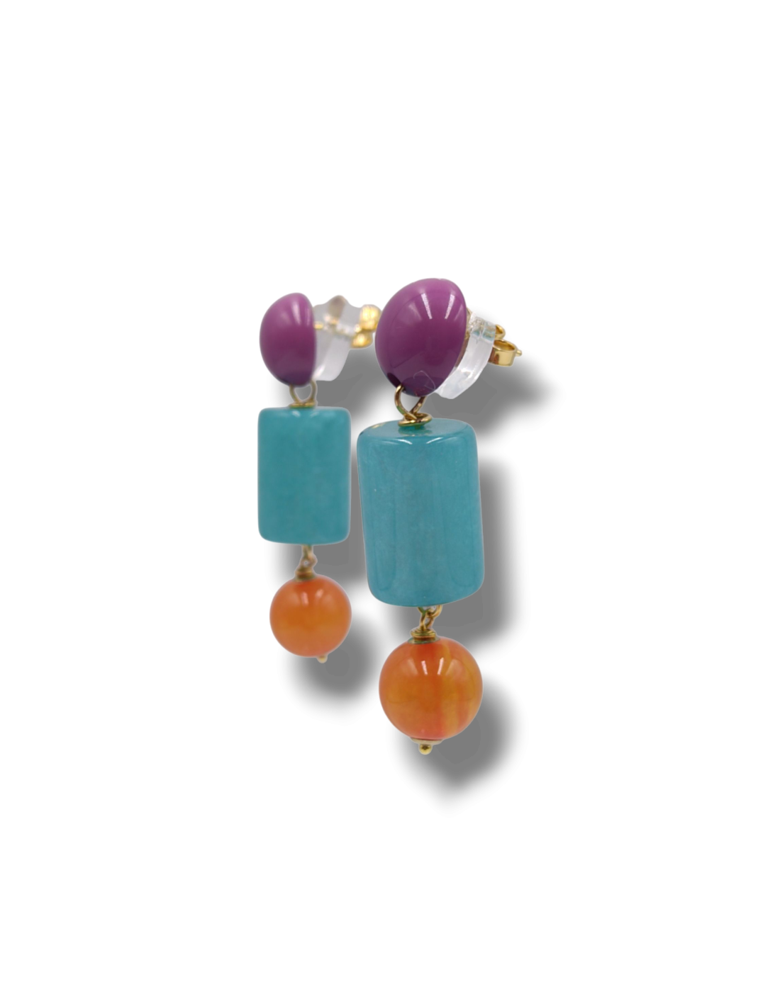 Add a splash of color to your look with these eye-catching dangling earrings, handcrafted from premium Italian resin. Featuring a pastel semi-spherical stud and vibrant speckled beads in cylindrical and spherical shapes, each piece boasts a glossy, translucent finish that makes the colors truly pop.