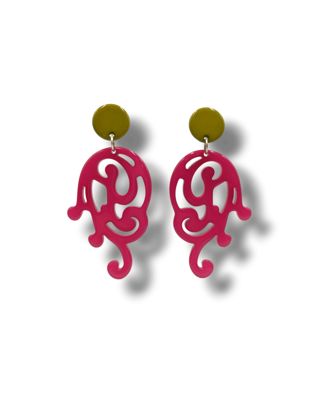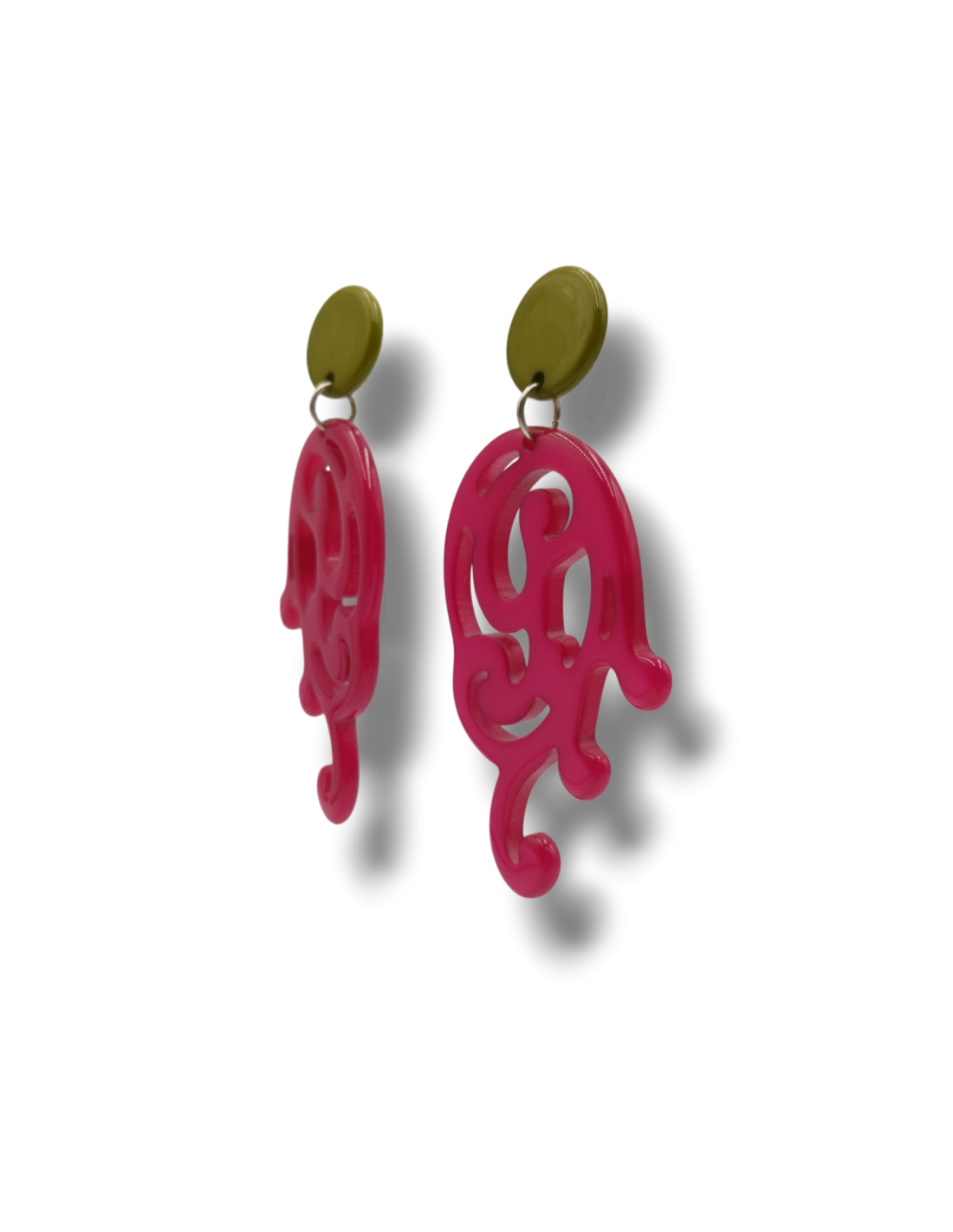 Maxi orecchini pendenti dallo stile esotico e sofisticato, realizzati interamente a mano con resine italiane di altissima qualità. Il top a lobo, in tinta unita, si abbina con armonia al pendente traforato dalla forma irregolare, impreziosito da una finitura satinata che dona una luminosità delicata e avvolgente. Leggeri ma d’impatto, sono il dettaglio perfetto per valorizzare qualsiasi look, anche da soli: autentici protagonisti di stile.