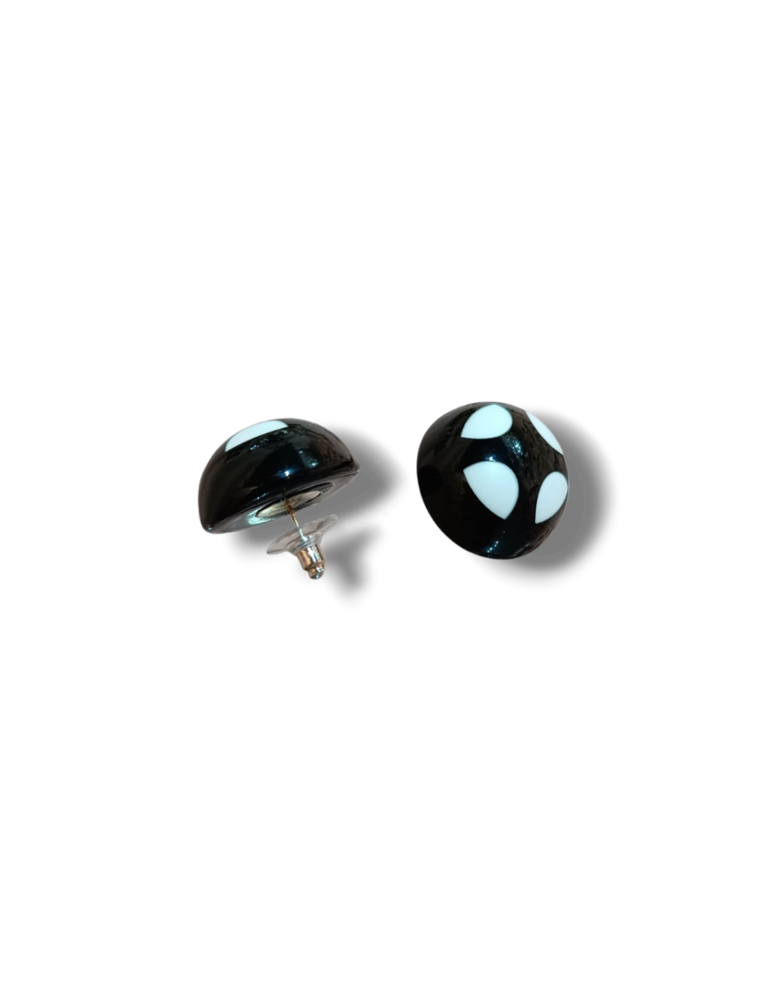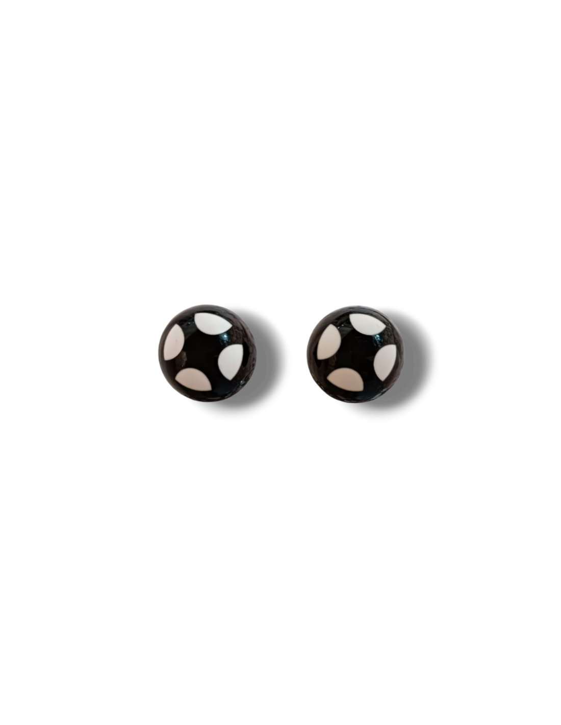 Orecchini a bottone dal design essenziale e contemporaneo, caratterizzati da una elegante e armoniosa. La superficie è decorata con un motivo a pois bianco ottico e nero, creando un contrasto grafico sofisticato e senza tempo. Realizzati in resina italiana di alta qualità, sono anallergici, leggeri, comodi da indossare e ideali per aggiungere un tocco di stile deciso a qualsiasi outfit. Un piccolo dettaglio capace di fare la differenza.