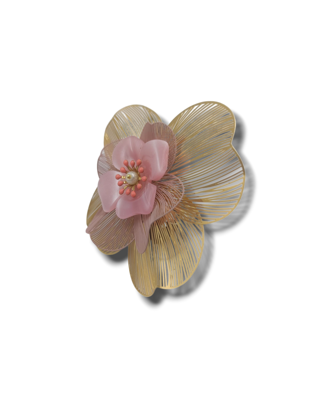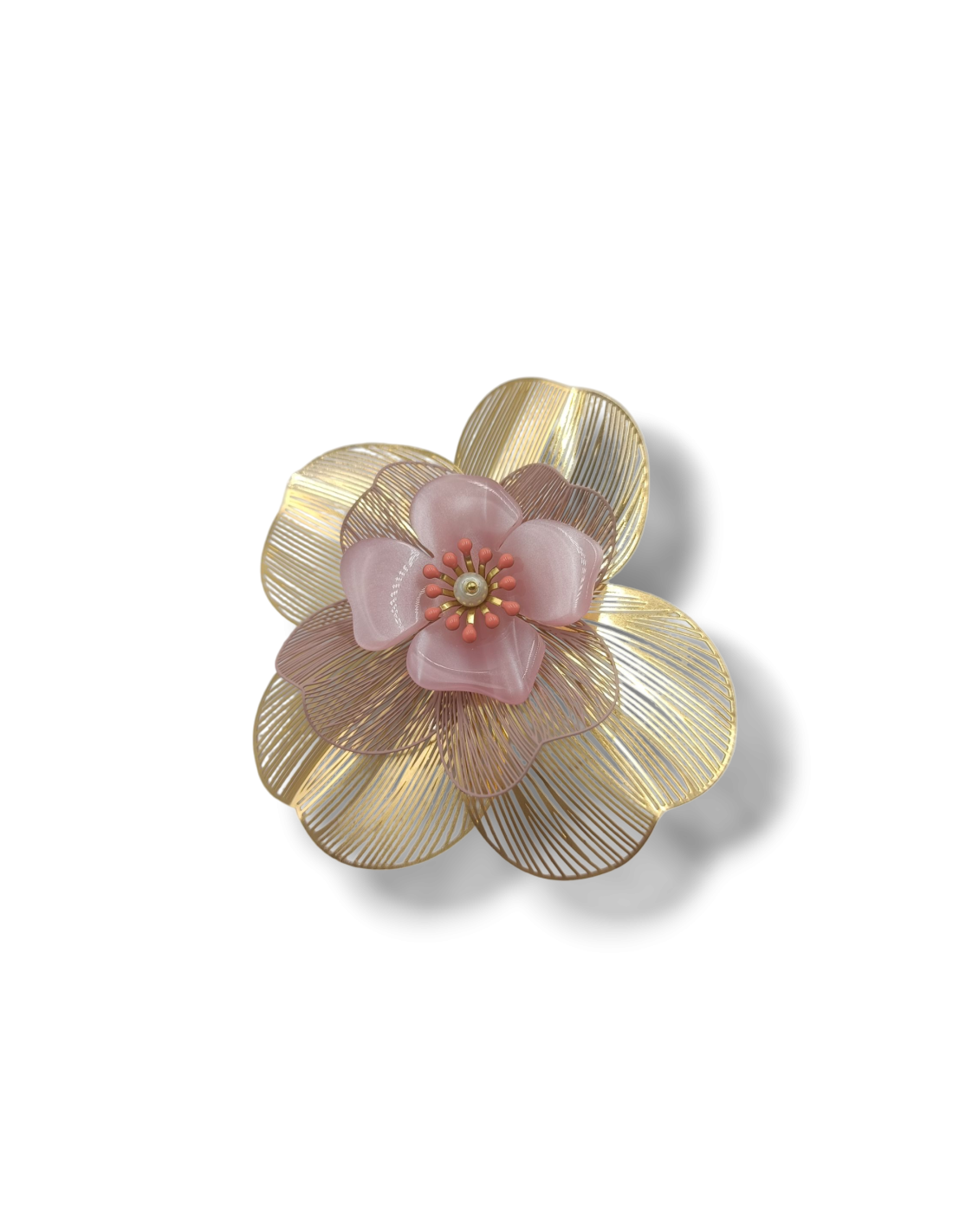 Grazie alla lieve grammatura, questa tipologia di spilla è adatte ad essere fissata anche su tessuti leggeri, come delle semplici magliette! Adorabile anche apposta su cappelli o cerchietti! Insomma largo alla fantasia! Colore rosa e dorato.