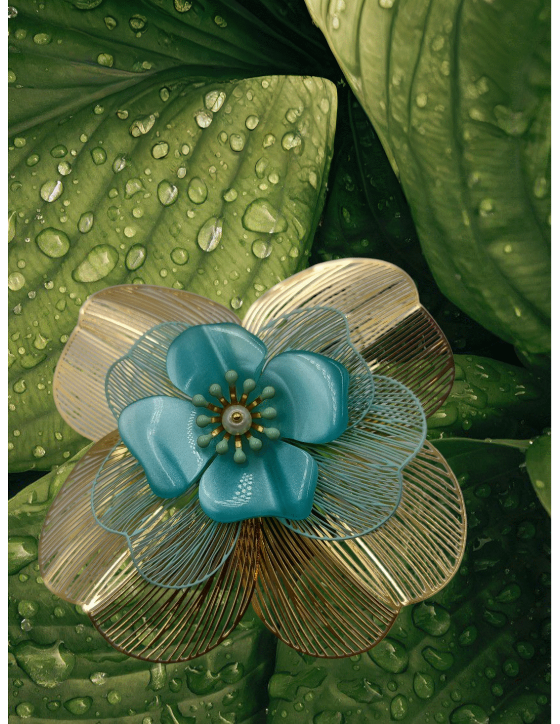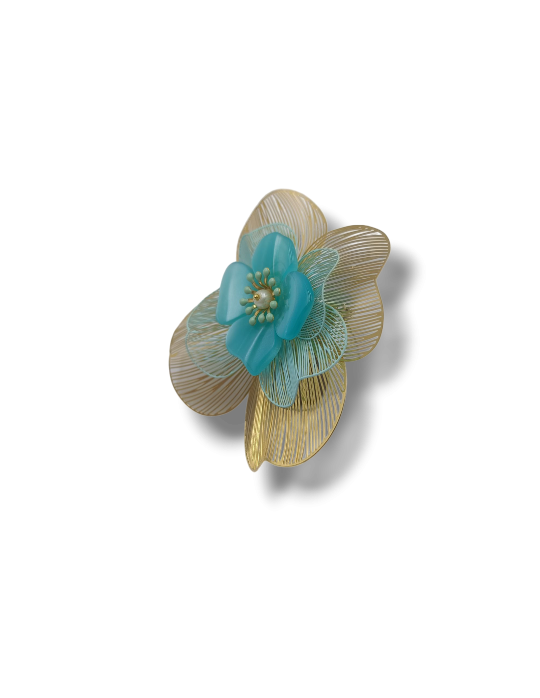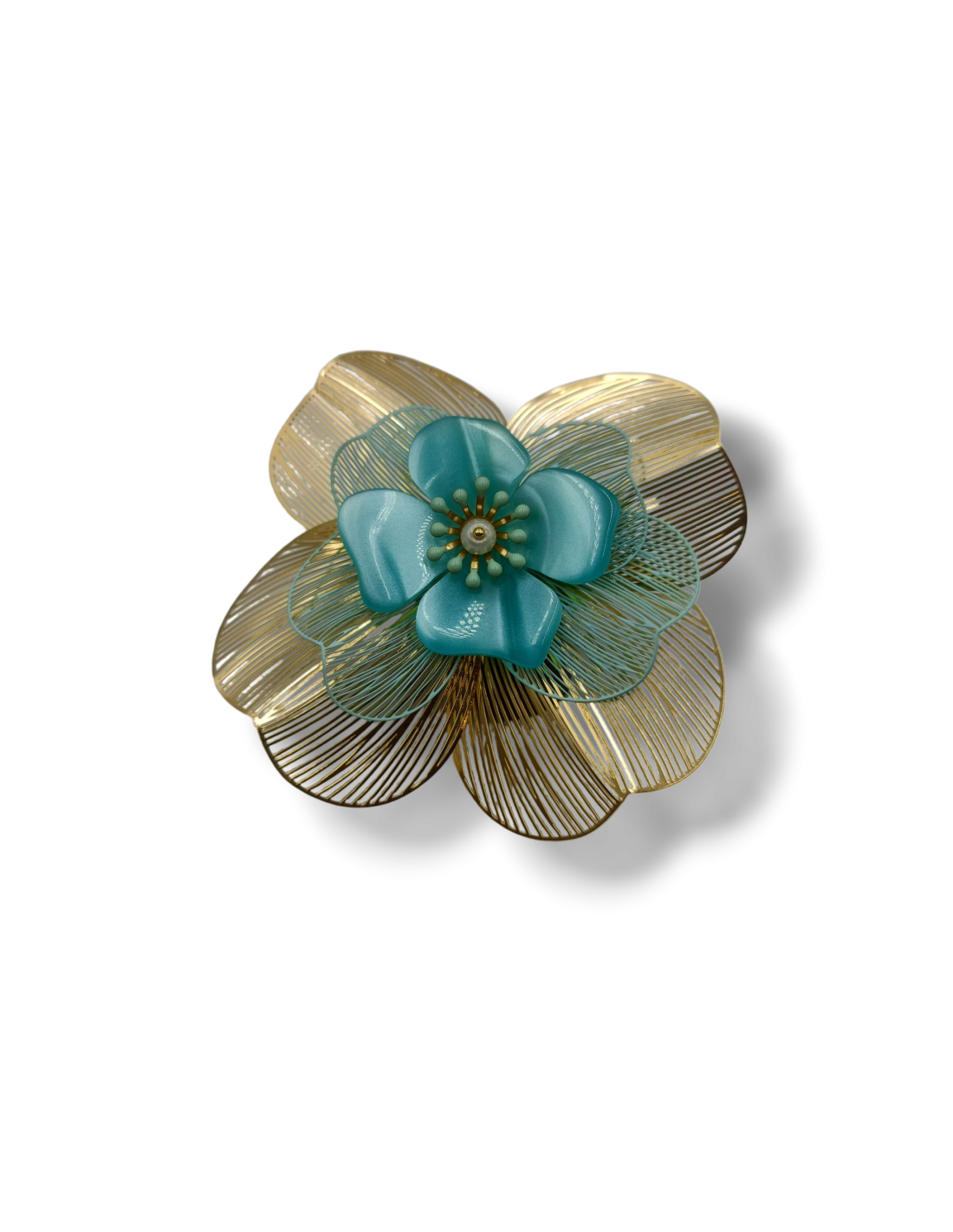 Grazie alla lieve grammatura, questa tipologia di spilla è adatte ad essere fissata anche su tessuti leggeri, come delle semplici magliette! Adorabile anche apposta su cappelli o cerchietti! Insomma largo alla fantasia! Colore turchese e dorato.