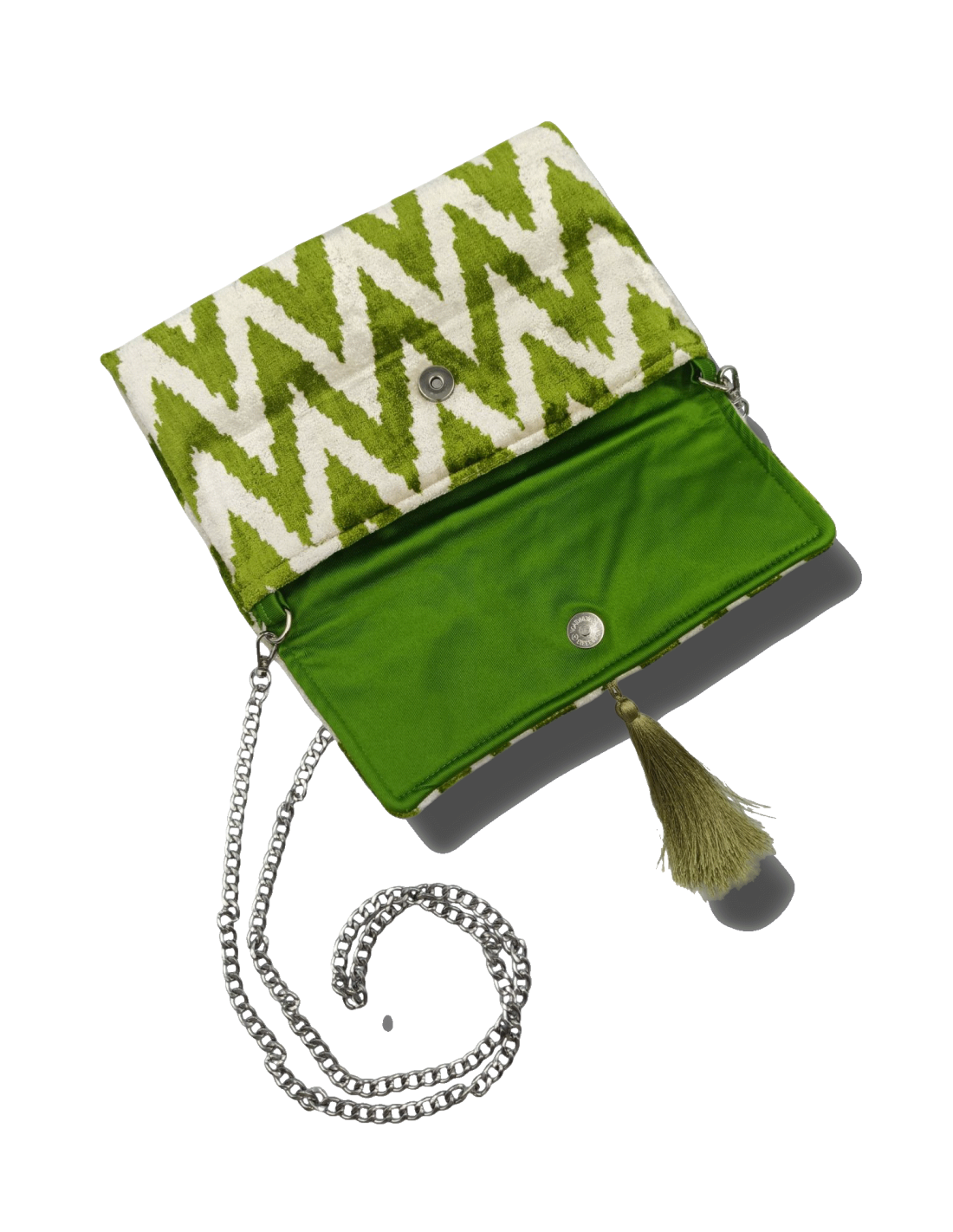 Si può utilizzare come una clutch a mano oppure indossarla a spalla. Il tessuto, nato per scopi di arredo, la rende una borsa tanto bella e decorativa, quanto pratica e resistente. Un’esplosione di colore e motivi geometrici!