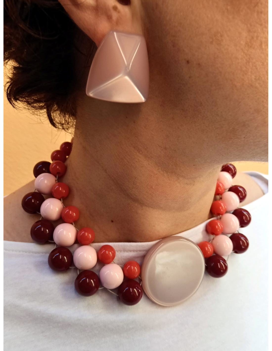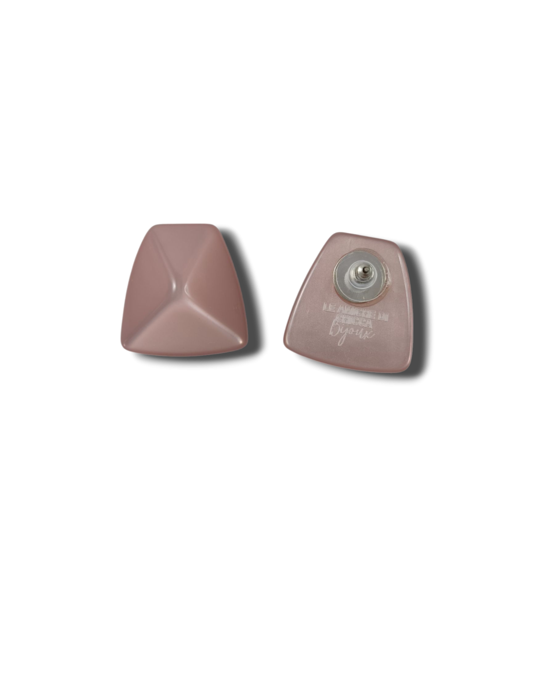 Orecchini a lobo effetto satinato, dalla forma piramidale sfaccettata e smussata. La forma tridimensionale combinata alla texture delicatamente luminosa rende questi orecchini particolarmente raffinati ed eleganti. Resina di alta qualità prodotta in Italia e perni anallergici in ottone galvanizzato.